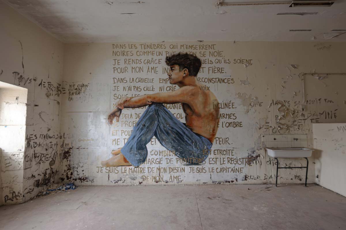 Inspirés du poème Invictus de William Ernest Henley, la fresque et la toile se font écho en faisant dialoguer mémoire, résistance et liberté.